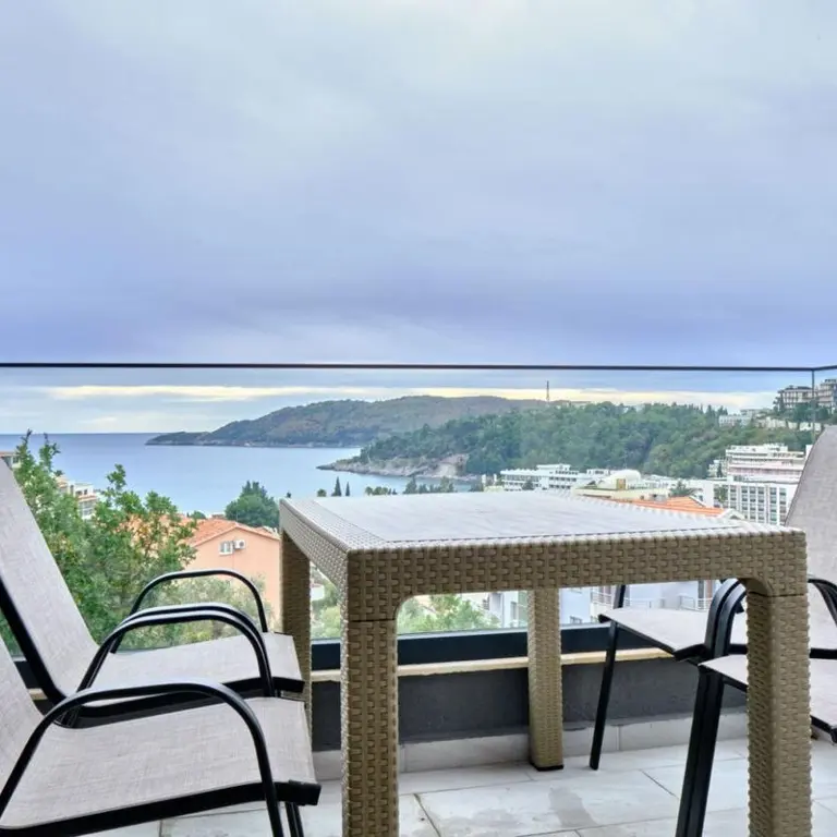 U neposrednoj blizini hotela Splendid, u naselju Becici, prodaje se lijepo opremljen stan. Pozicioniran je na drugom spratu novoizgradjenog kompleksa koji posjeduje bazen i recepciju a zauzima povrsinu od 39m2. Po strukturi je jednosoban i juzno orjentisan sa pogledom na more. Cine ga hodnik, dnevni boravak sa kuhinjom i trpezarijom, spavaca soba, kupatilo i terasa. Stan je opremljen luksuznim namjestajem, a na dijelu terase je postavljen djakuzi.